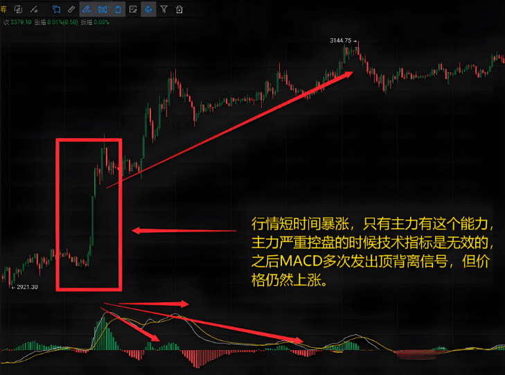 It should be pointed out that the cryptocurrency market occasionally sees low-probability one-sided trends. During these times, divergence becomes ineffective. This can be easily excluded by observing strength; when the strength of rise or fall is very high, the so-called strength refers to extremely rapid surges or drops, indicating that this is controlled by the main players. At this time, technical indicators become ineffective, and even the most accurate divergences will continue to diverge.