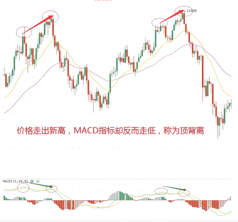 Divergence is a relatively practical form of MACD. Normally, price and indicators are proportional, but when the price and indicator continuously move in opposite directions, it indicates divergence. When something unusual happens, there must be something amiss; if the price rises while the indicator falls, it indicates that this rise is problematic, and the same applies to bottom divergence.