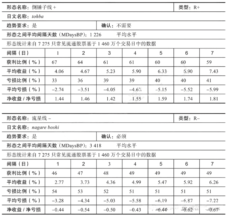 It should be noted that in the summary table of the Inverted Hammer and Shooting Star patterns, we can see that the Inverted Hammer does not require confirmation, but the Shooting Star must be confirmed, indicating that compared to the Shooting Star, the success rate of the Inverted Hammer is higher.