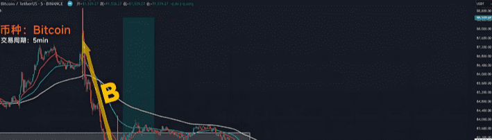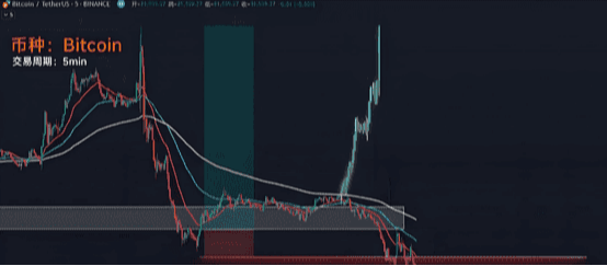 When we enter the 5-minute trading cycle, when the price is about to reach your ambush position, which is near the white box! (See Figure 8)