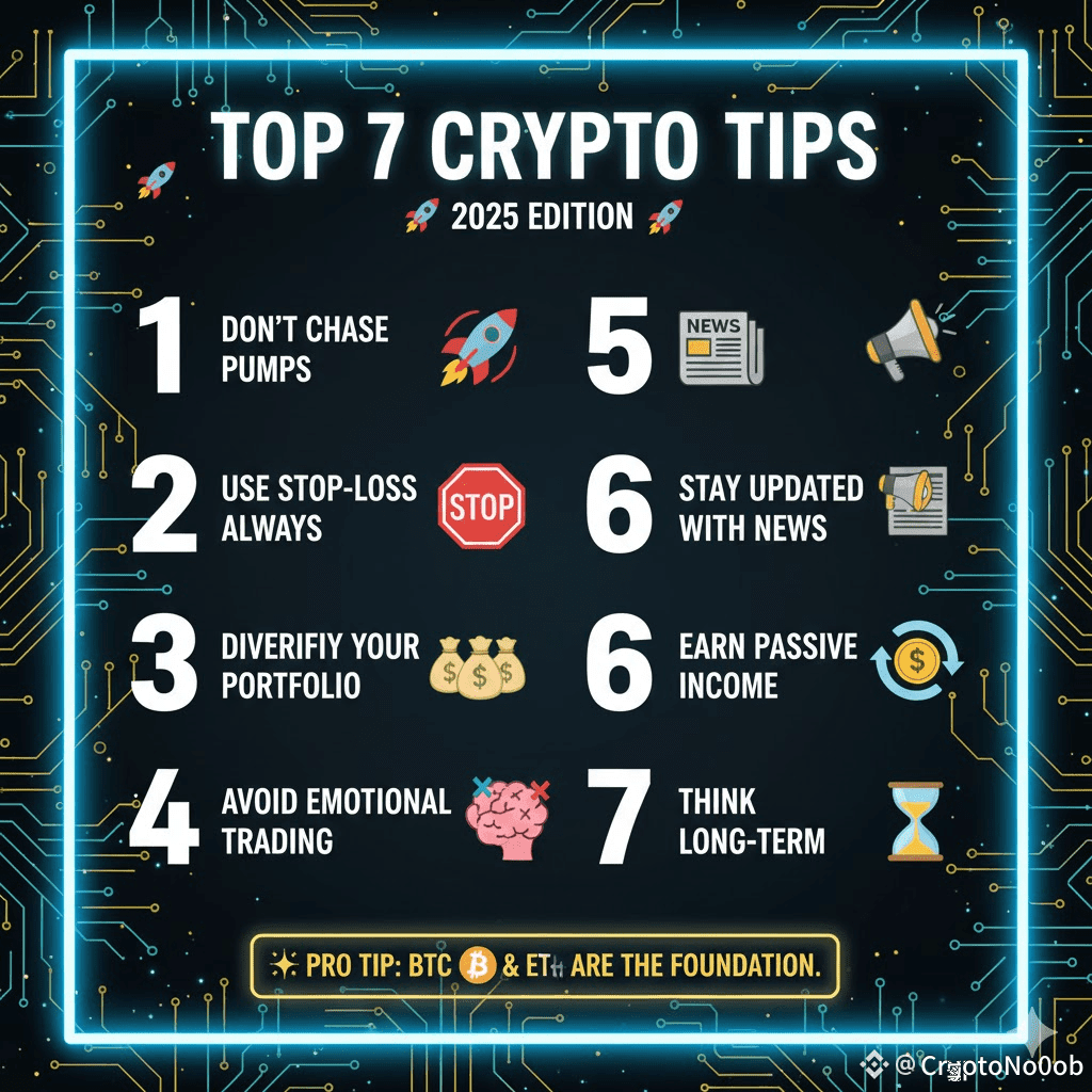 Crypto markets move fast — one wrong move can cost you, and one smart decision can multiply your gains. Here are seven battle-tested tips every trader should live by in 2025 👇