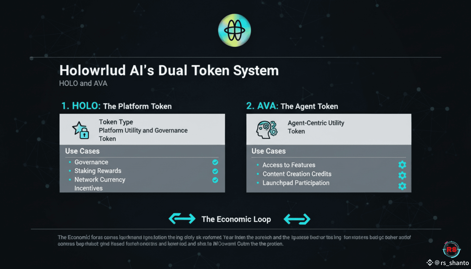 Holoworld AI operates on a dual-token system that is central to its ecosystem, providing both long-term platform stability and dynamic character-driven micro-economies. The two tokens are HOLO and AVA, each serving a distinct but interconnected purpose.