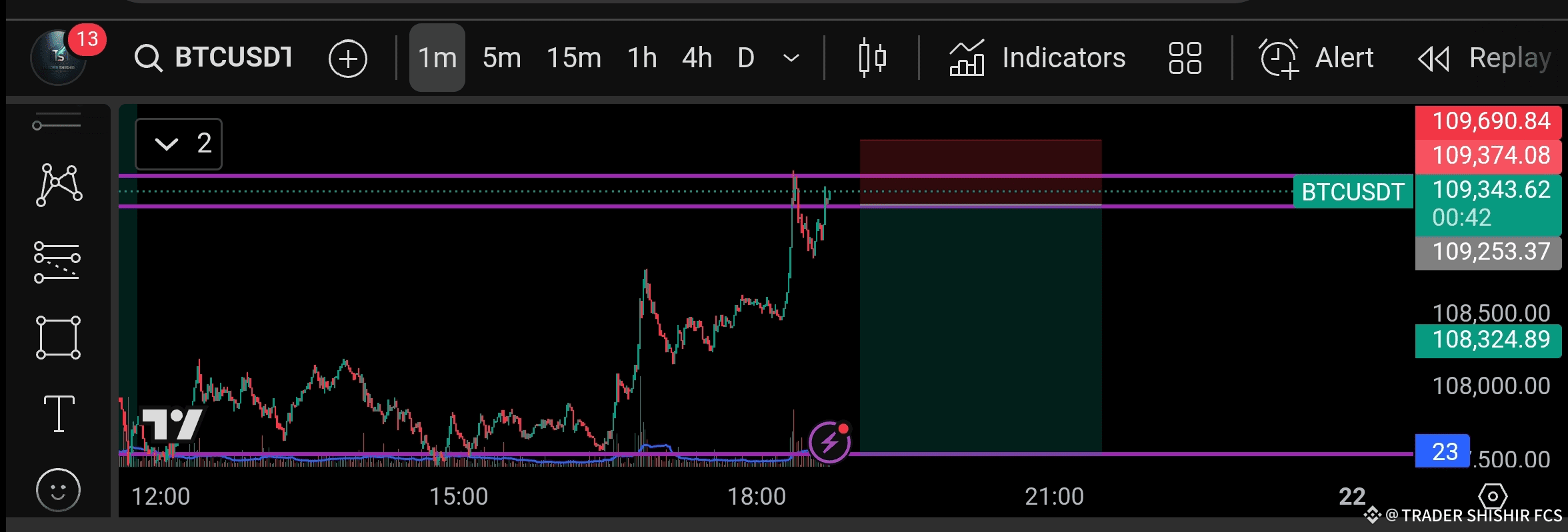 $BTC is currently testing a major resistance zone around $109,300 – $109,700.