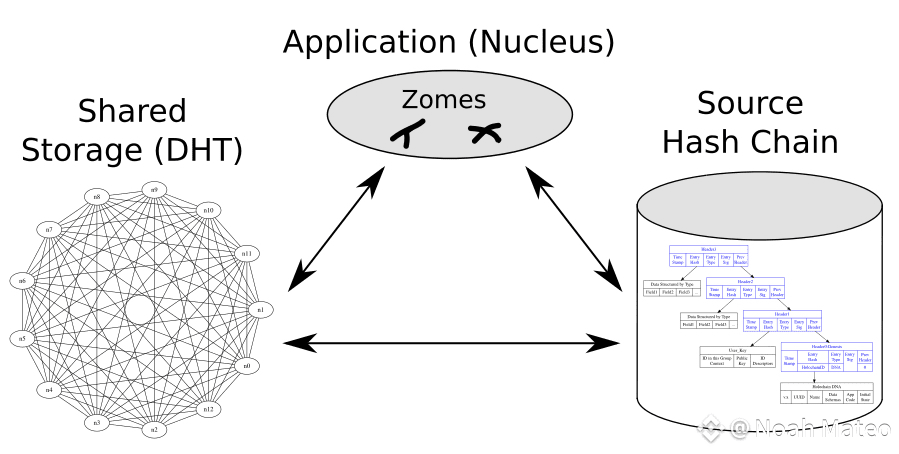Quantum-secure proofs protect tokens, while interoperability like Wormhole bridges AI across chains. Diagram Holochain-inspired architecture, adaptable to Holoworld. 3 “Holochain Architecture: Nucleus, DHT, and hash chains for agent-centric apps.” “RIGHT” “SMALL”