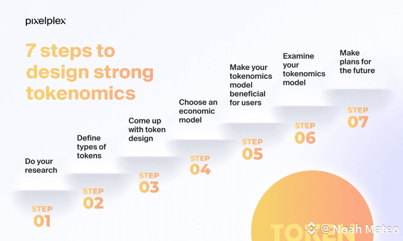This infographic outlines steps for robust AI tokenomics. 6 “7 Steps to Strong Tokenomics: A guide for designing beneficial models in AI-Web3 projects.” “LEFT” “SMALL”