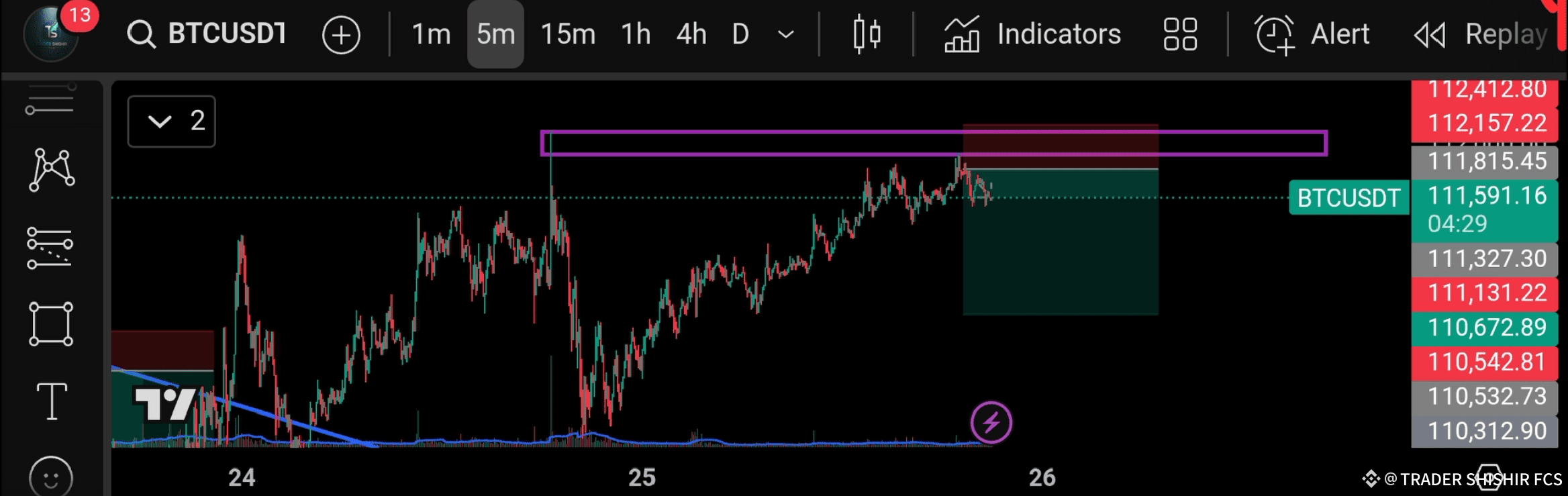 $BTC is now testing the 111,800 โ 112,200 resistance area, which previously acted as a strong supply zone.