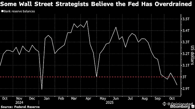 Liquidity levels have dropped below “ample” territory. Reserves recently slipped under $3 trillion, raising fears of market stress as short-term rates edge higher. Ending QT early could push the Fed back into bond-buying mode, effectively flipping from tightening to easing sooner than expected.