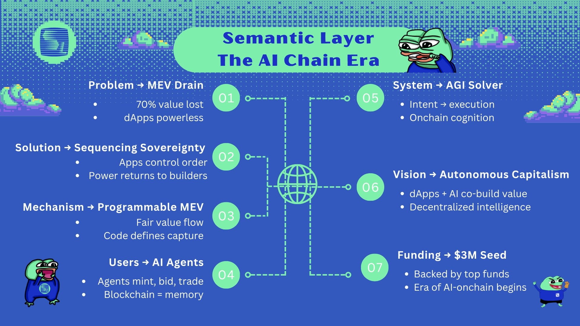 Project Overview: The core goal of Semantic Layer is to build an underlying infrastructure that supports AI agents to autonomously participate in the on-chain economy. Its innovation lies in creating an economic environment where AI agents can autonomously issue, bid, and trade assets, referred to as 'Agentconomy' (Agent Economy).