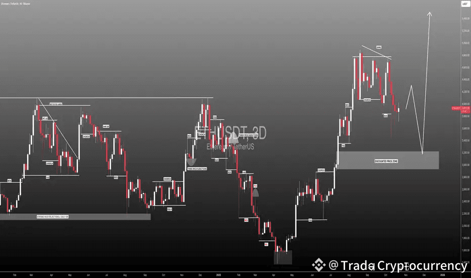 ETHUSDT we believe the price will initially decline before launching from the $3000 price region. This area appears more promising and could function as a discounted price zone. Three target levels are suggested below: