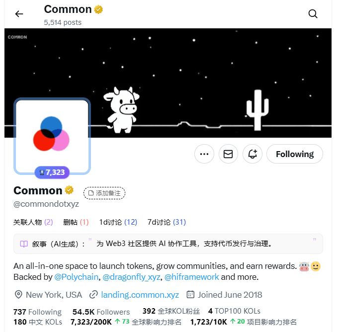 Project introduction: Common is a cross-functional DAO governance and community management platform aimed at providing more efficient collaboration tools for decentralized autonomous organizations.