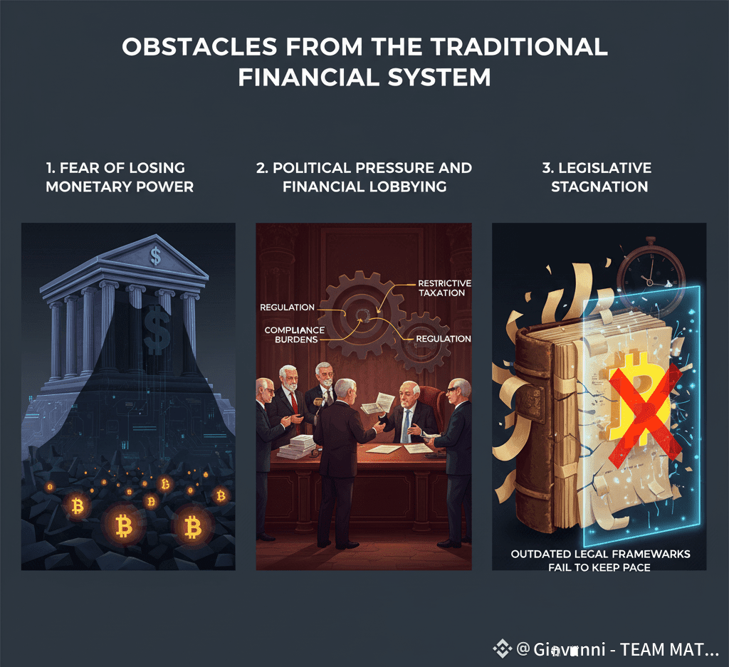 2. Political pressure and financial lobbying: Major financial entities influence policymakers to impose restrictive taxation or compliance burdens that hinder innovation.
