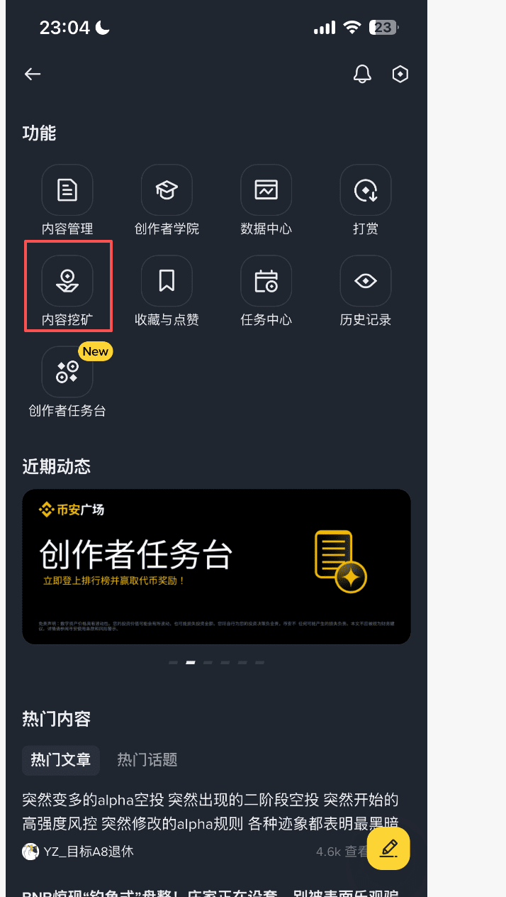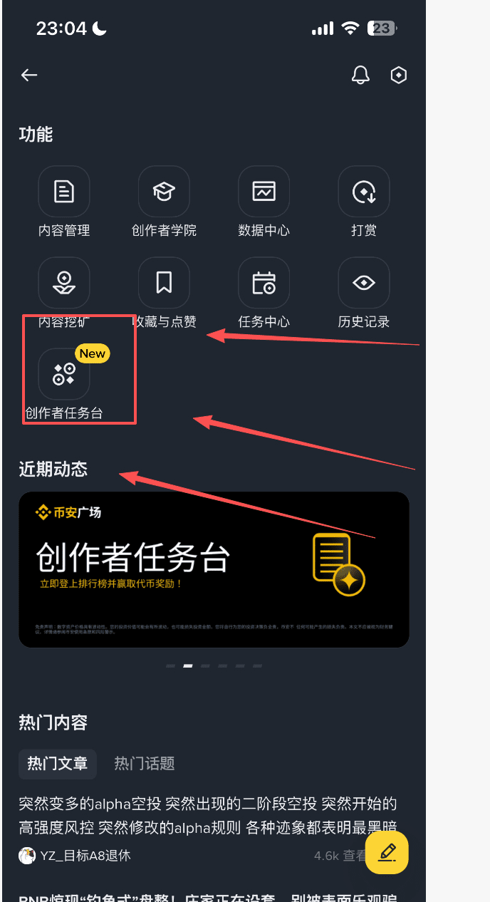 Find the creator task board, click in to do project party tasks, get airdrops, familiarize yourself with the process in the early stages, and later sprint to the top 100 to get more airdrops.