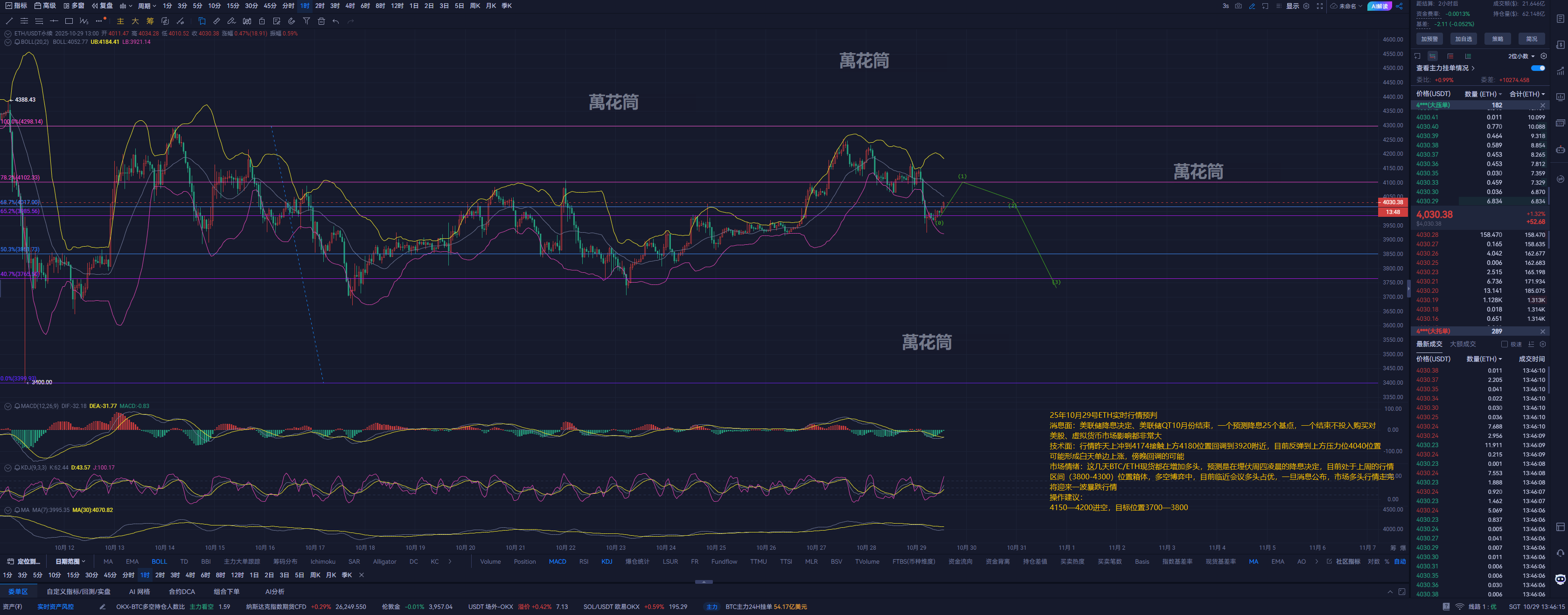 Market Sentiment: In the past few days, BTC/ETH spot has been increasing long positions, predicting that it is ambushing the interest rate cut decision early Thursday morning. Currently, it is within last week's trading range (3800-4300), in a tug of war between bulls and bears. As the meeting approaches, bulls are dominant. Once the news is announced, the bull market will likely experience a sharp drop.