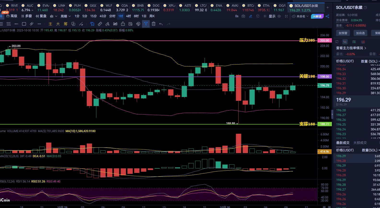 The technical aspect corroborates this point: in the 1-hour chart, the $188 support level has tested the bottom three times without breaking, indicating that the bulls are firmly defending the line, while once the $198 key level breaks with volume, it will trigger a wave of short-seller stop-losses, rushing straight to the $205 resistance level! Remember, the market always operates against human nature—when retail investors are scared stiff by whale actions, it is often the golden moment for the main force to accumulate positions.