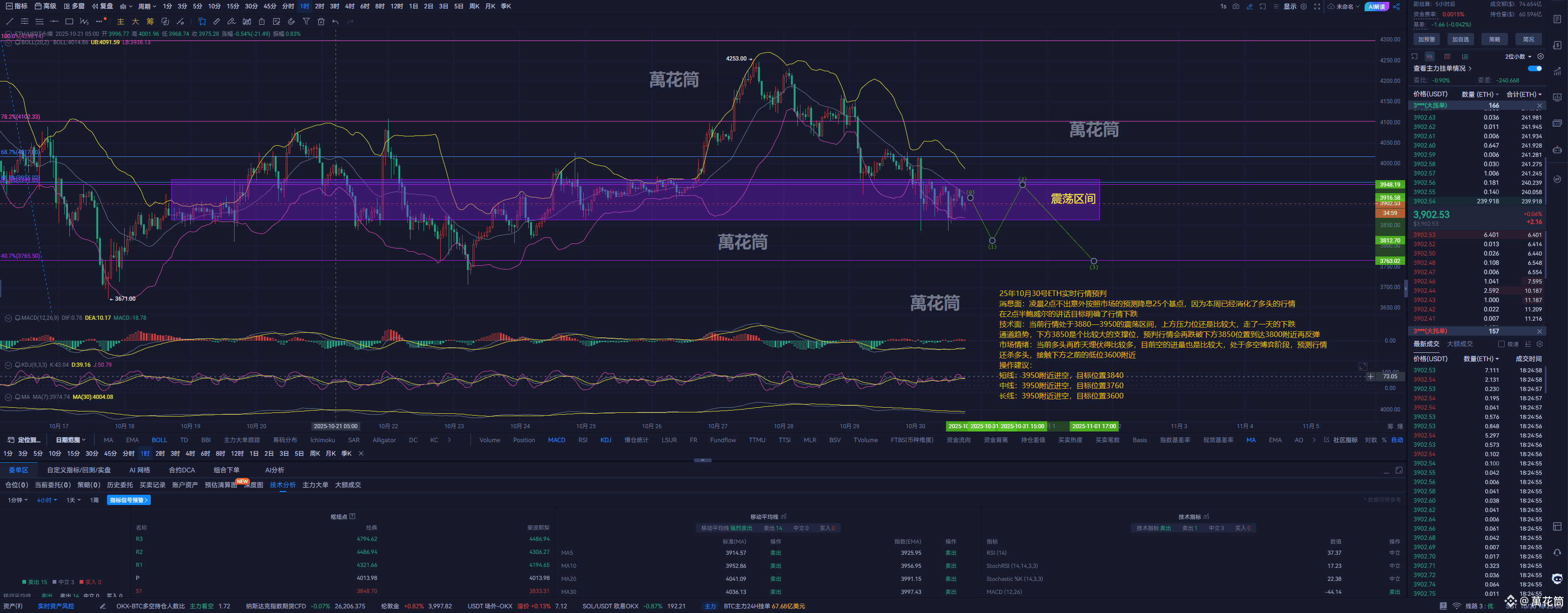 市场情绪:当前多头再昨天埋伏得比较多,目前空的进量也是比较大,处于多空博弈阶段,预测行情还杀多头,接触下方之前的低位3600附近