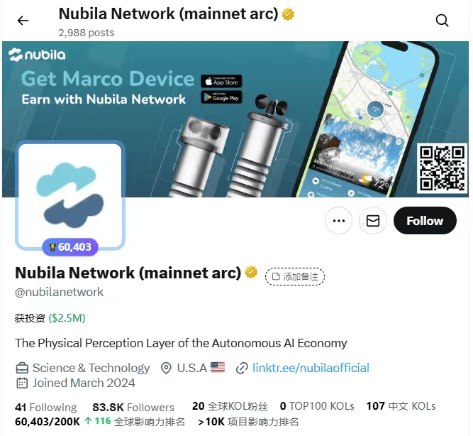 Nubila is an ESG data oracle platform for the DePIN ecosystem, providing accurate and usable environmental and governance data support.