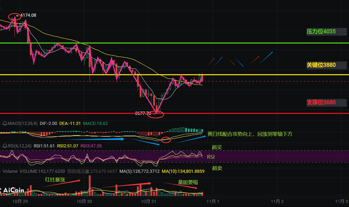 If the price stays above 3880, you can try a small long position, with a stop loss set below 3680.