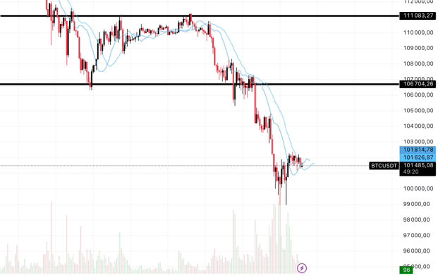 Plan: I am not catching knives. I am waiting for stabilization of daily candles with decreasing sales volume. A potentially interesting zone for accumulation - $99-100k with a stop below $97k, but only upon signs of holding.