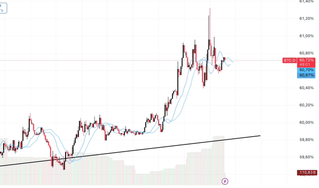 Dominance is approaching 61% - capital is concentrating in Bitcoin
