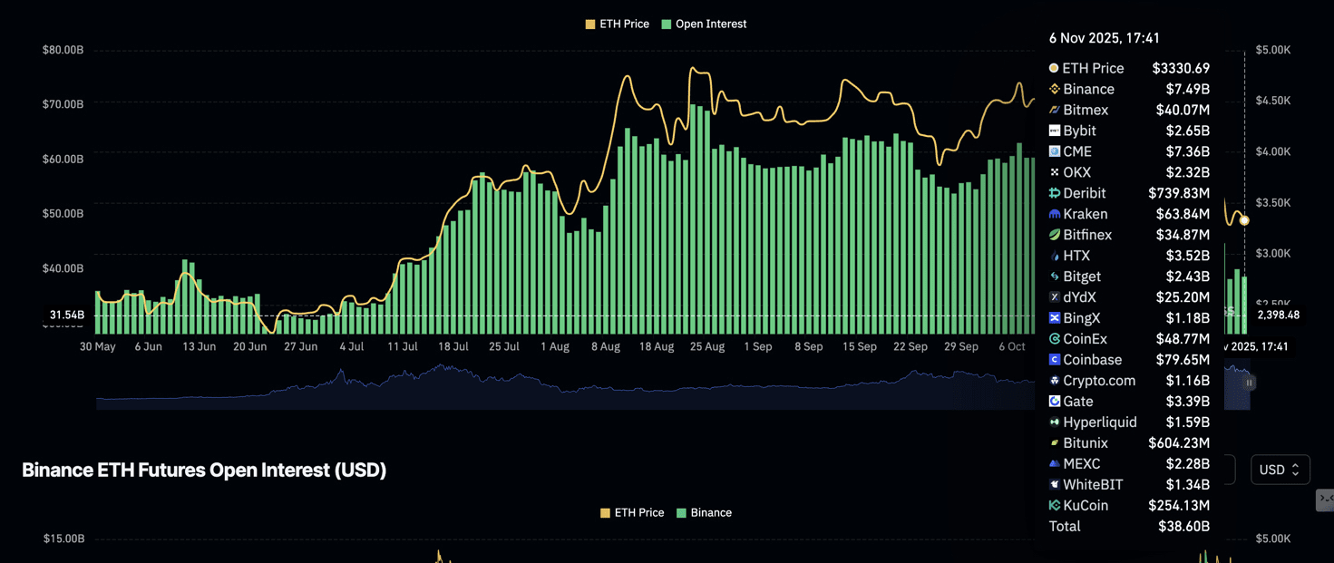 Retail demand for Ethereum is also on a continuous decline, with open interest in futures dropping to $38.6 billion from its peak of around $63 billion in October.