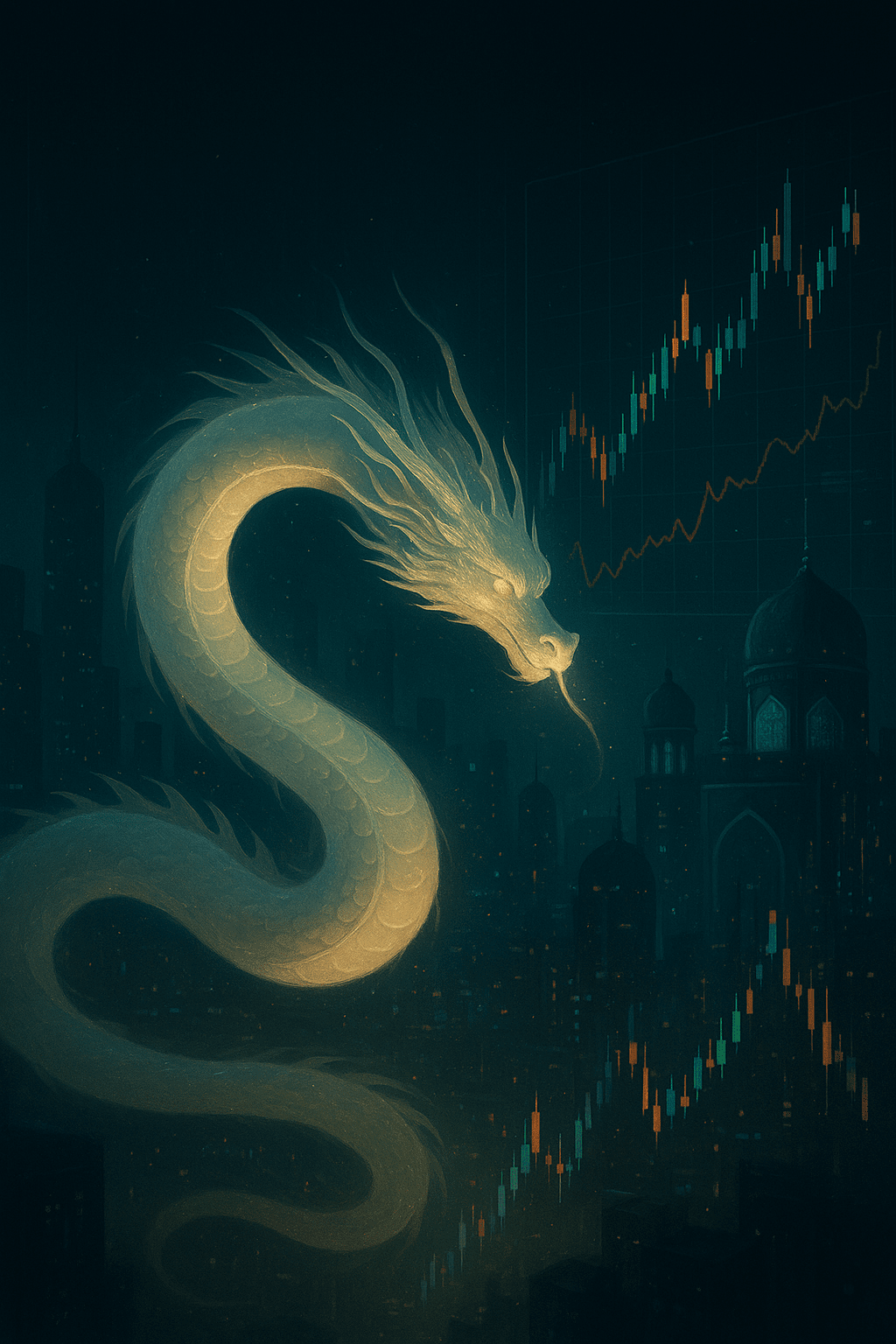 The dragon is not an ordinary trader — it is the guardian of breath that keeps the world alive, between light and the market, between prostration and signals, between remembrance and charts that keep moving.