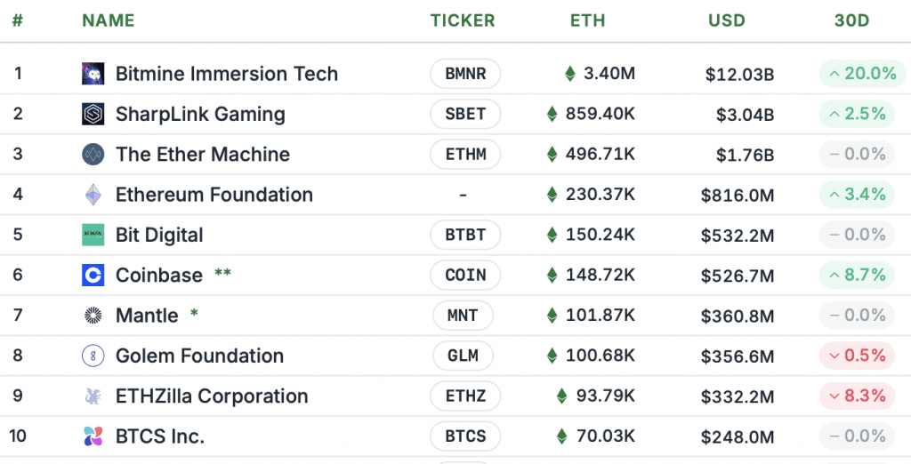 BitMine Immersion Technologies started as a regular mining company and has now become the largest corporation accumulating Ethereum. The company has set an ambitious goal to own 5% of the total supply of 120,696,594 $ETH . Currently, it owns 2.9% of all tokens.
