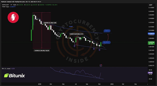 SUPRA also gained fresh momentum after a clean breakout from a falling-wedge bottom. The price sits near $0.002536, which remains far below its earlier surge near $0.090000. However, the structure now shows reduced selling pressure and a clear support floor.