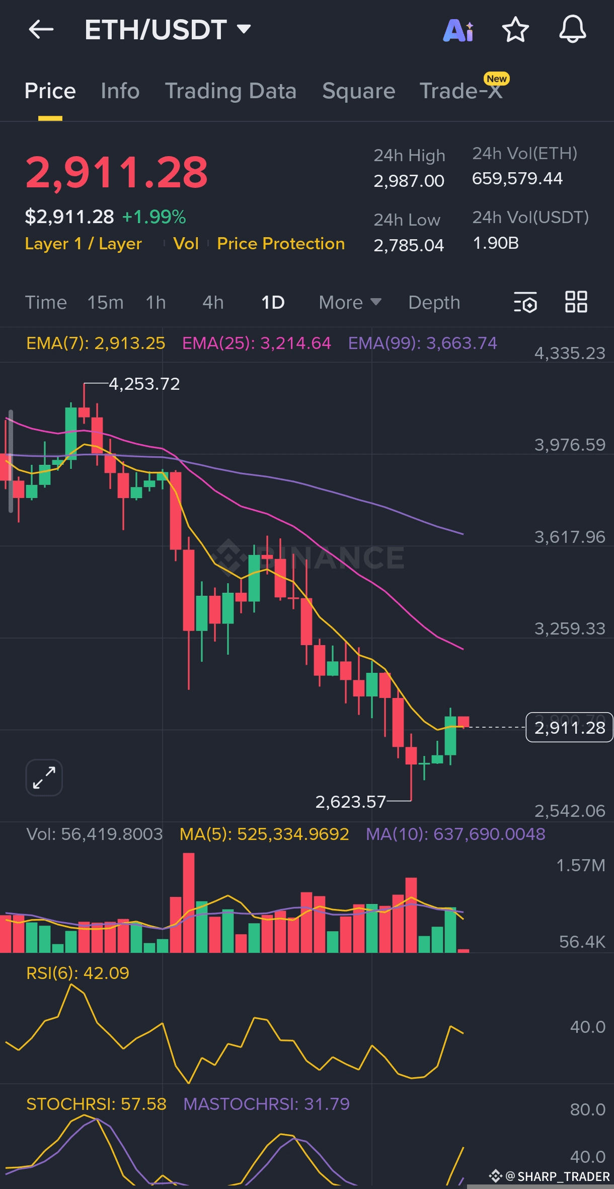 1. R1: $2,913 (EMA 7) – breakout trigger