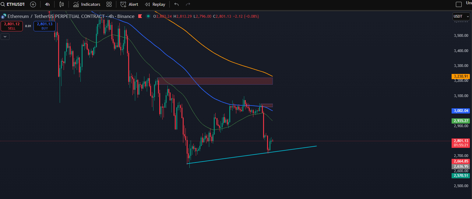 There is still a fairly wide gap below; if the trendline breaks, ETH could return to the 2,650 – 2,570 zone to find real buying power.