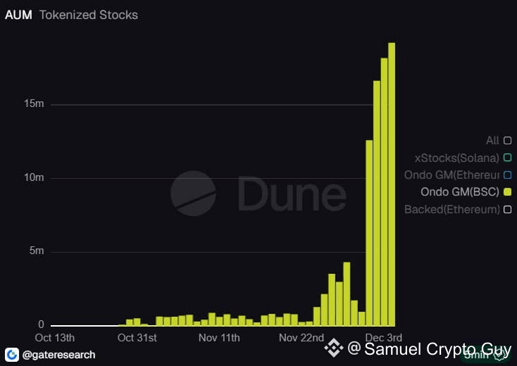 TLDR: When Binance Wallet integrates, things don't just move—they explode. Ondo Global Markets' tokenized stock market cap on the BNB Chain has gone from under $1M to nearly $20M since December 1st. That's a nearly 20x surge in a flash!