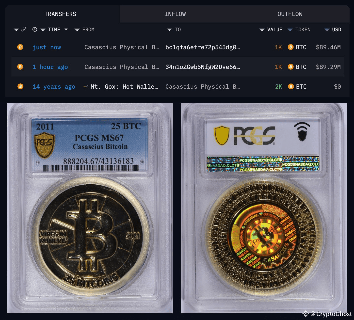 On December 5-6, 2025, two ultra-rare Casascius physical Bitcoin coins each loaded with 1,000 BTC finally cracked open after 13-14 years of dormancy.