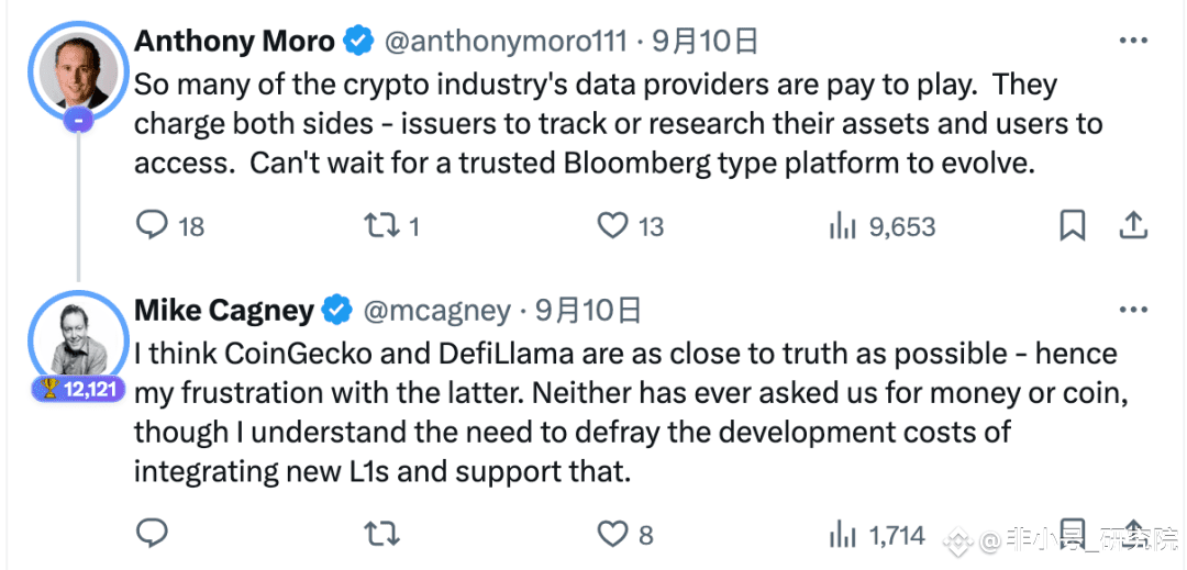 他写道:“我收到了很多来自大型加密货币机构和风险投资公司的人私下联系 defillama 和我们的合作伙伴。这些人中的每一个都需要被当面点名,问问他们如果连自己都无法核实事情,怎么能在这个行业工作。”