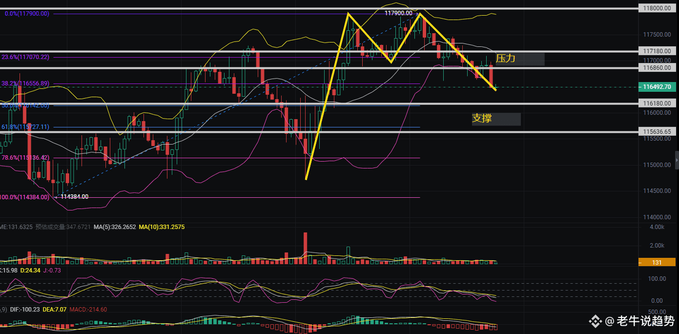 压力层叠杀人阵:117500是短期铁顶,下方117180成了多空分水岭,没放量突破就是耍流氓;