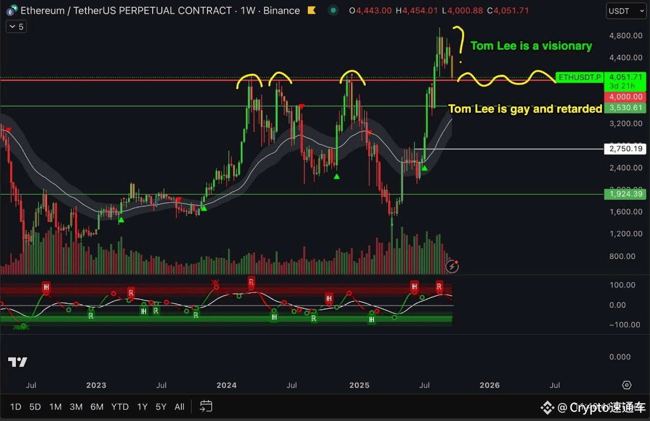 $ETH 技术面再清晰不过了,4000 美元就是关键分界线。