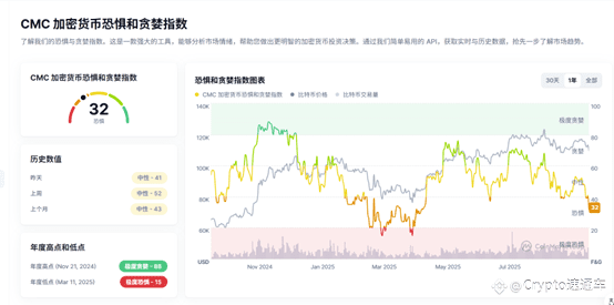 恐慌贪婪指数32,4月份以来新低,再跌到20左右就可以抄底了。