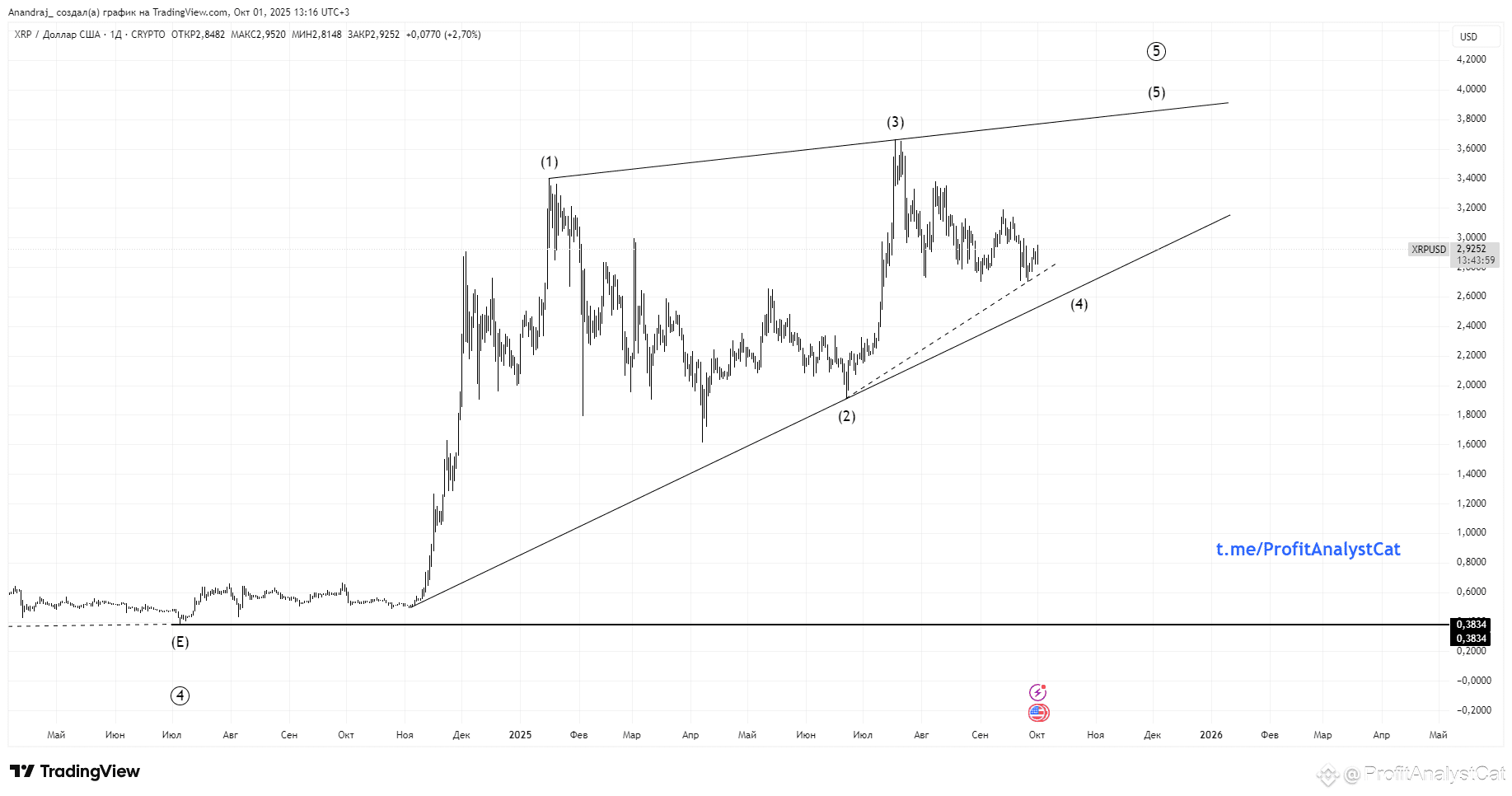 Удержание зоны 2.80–2.90 и пробой выше 3.10–3.20 подтвердят старт волны (5).