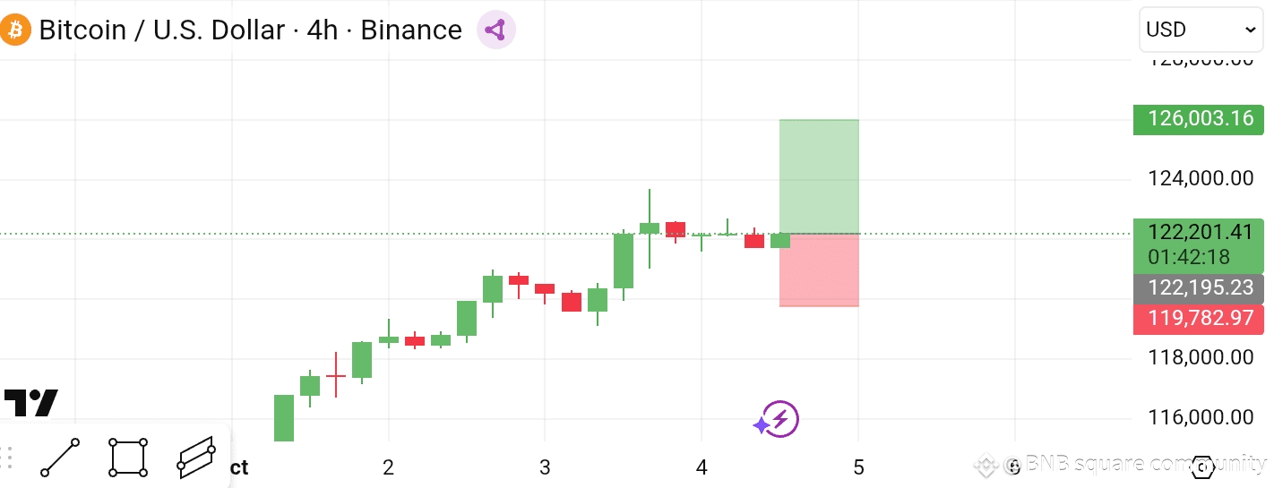 · Support: 122,195.23 → 119,782.97 → 118,000.00