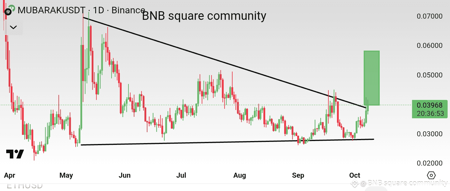 $MUBARAK is forming a strong Descending Triangle on the daily chart – a bullish continuation pattern.