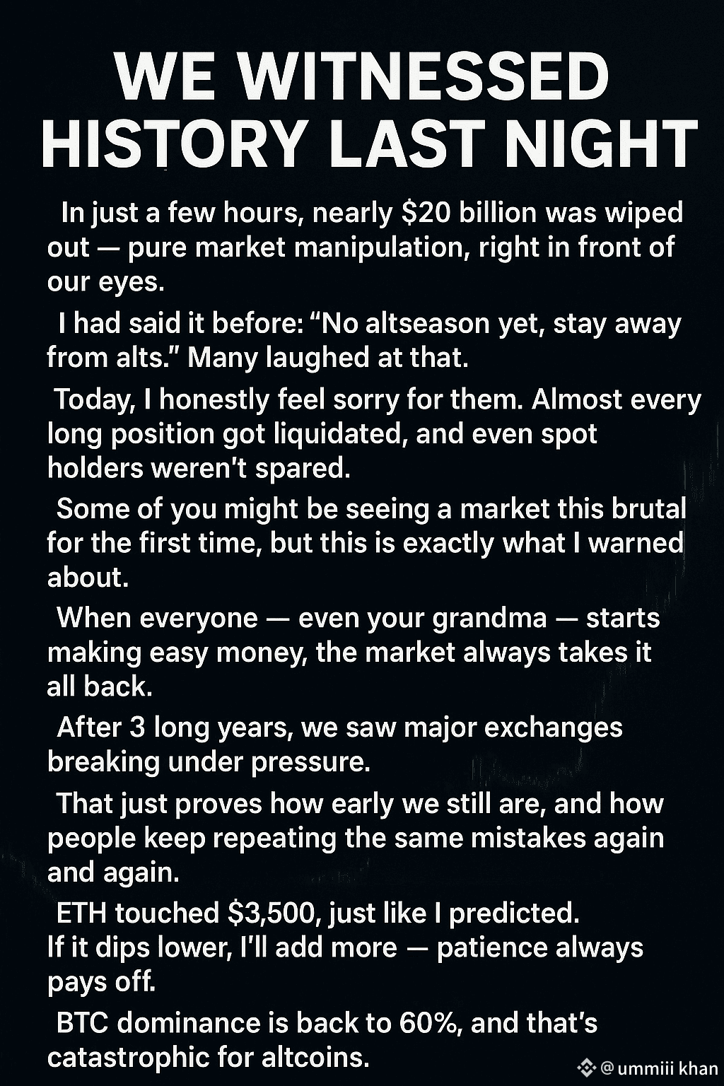 In just a few hours, nearly $BTC 20 billion was wiped out — pure market manipulation, right in front of our eyes. 🩸