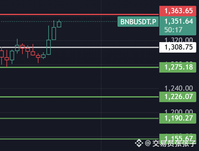 BNB今天留意1308这个位置,只要回踩不破此位置,那继续往上就看前高1363这个前高位置了!
