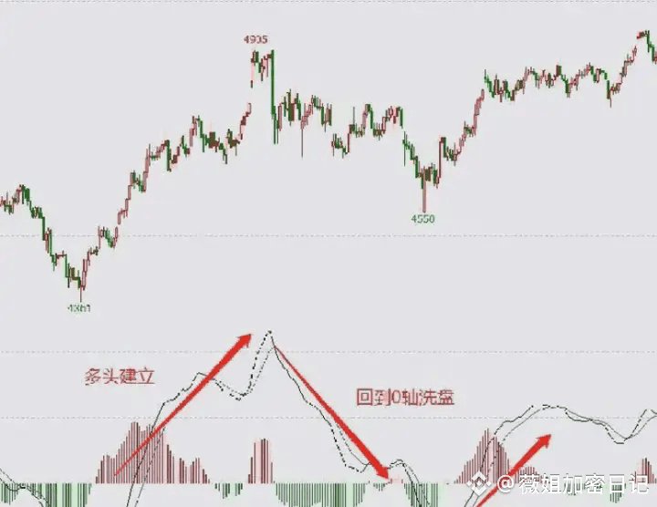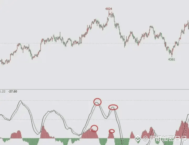 多空分水岭:0轴为多空分水岭,0轴以上偏多头,0轴以下偏空头;