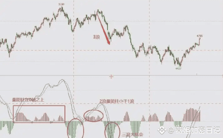 4.2浪回调时且MACD量柱缩短或二次放大入场做空交易3浪。