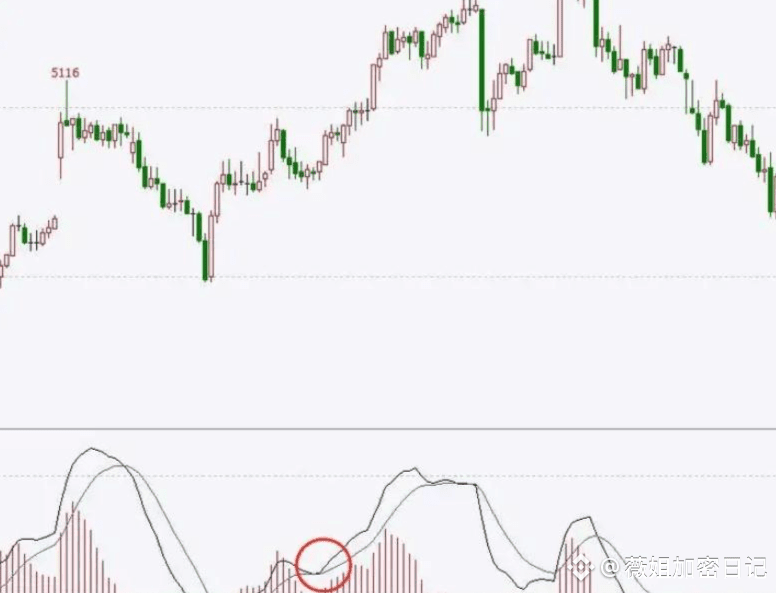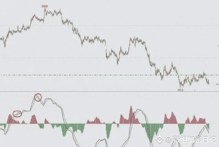 但是我们可以用macd+价格趋势来判断市场的转折点。