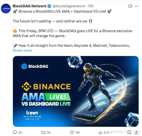 यह सेशन BDAG को निवेशकों के बीच ट्रस्ट और ट्रांसपेरेंसी बढ़ाने में मदद करेगा। Binance के प्लेटफॉर्म पर यह इवेंट BDAG के लिए ग्लोबल विज़िबिलिटी का बड़ा अवसर है।
