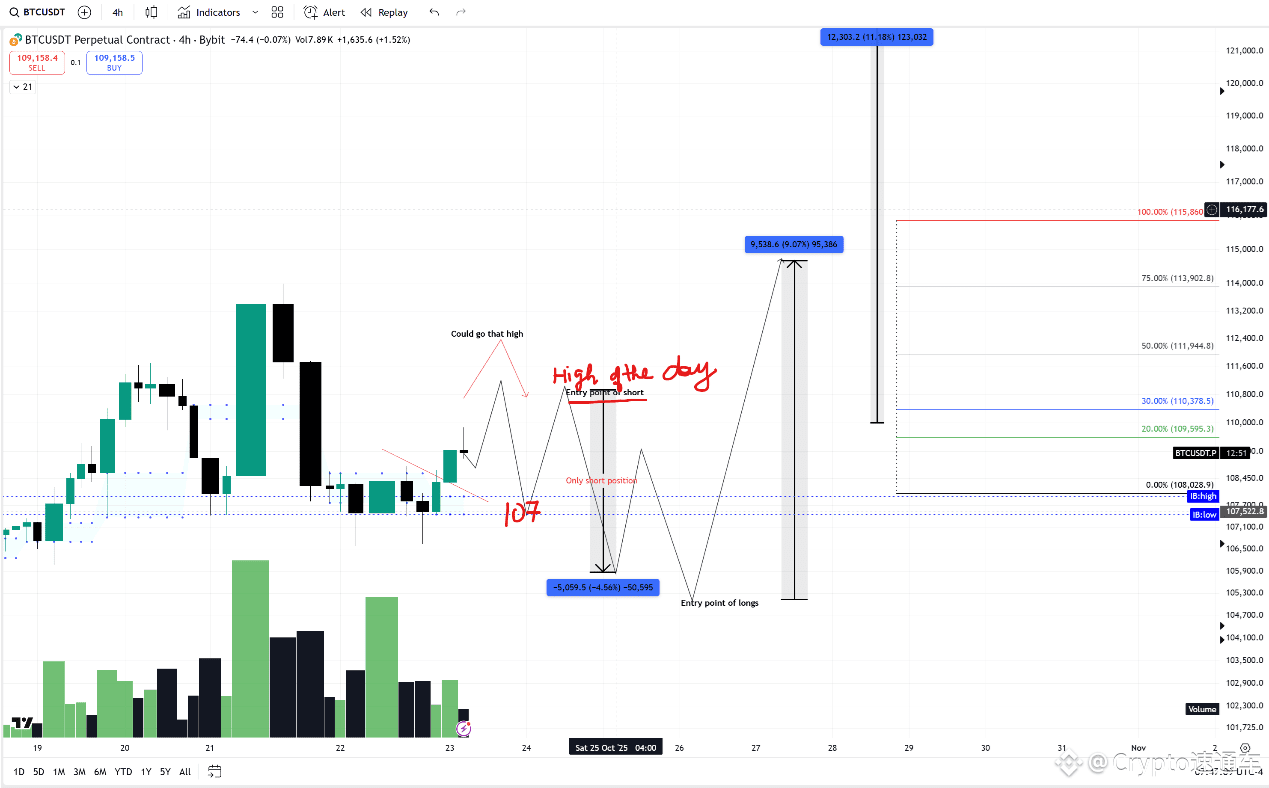 108,888 →(110–112 之间,不确定插针能到多高)只要收盘价低于 111,222 —— 我们将在 12PM 到 4PM (美东时间)做空。