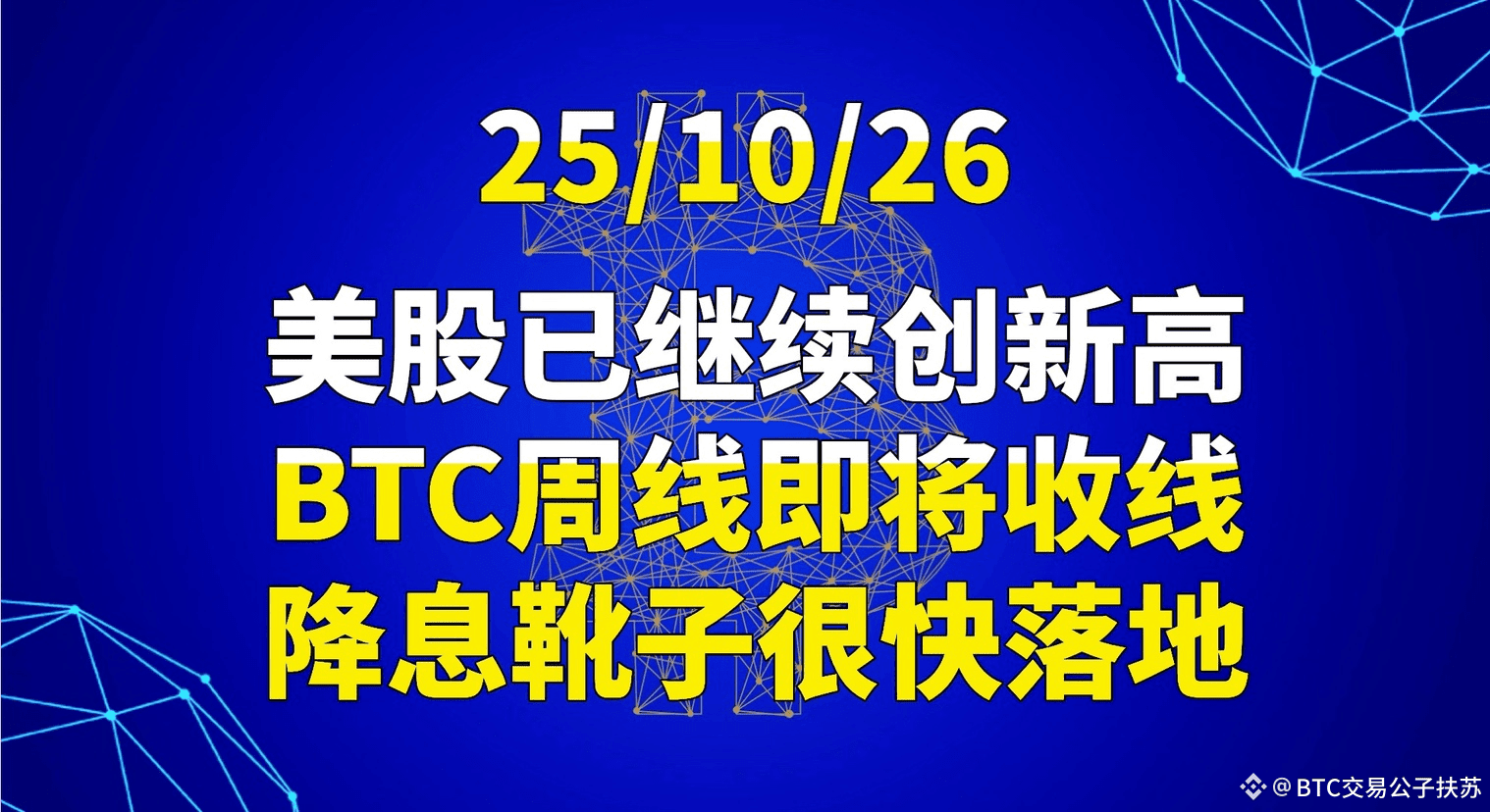 25/10/26美股已继续创新高,BTC周线即将收线,降息靴子很快落地