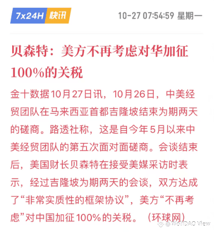 首先来说留给美方的时间不多了,此时的表态具有重要的时间窗口意义!同样也给接下来APEC 会议期间的中美双方会晤铺垫了良好氛围,尤其是针对特朗普而言可以顺坡下驴;如果能有更多利好落地,无疑会进一步推动市场走势