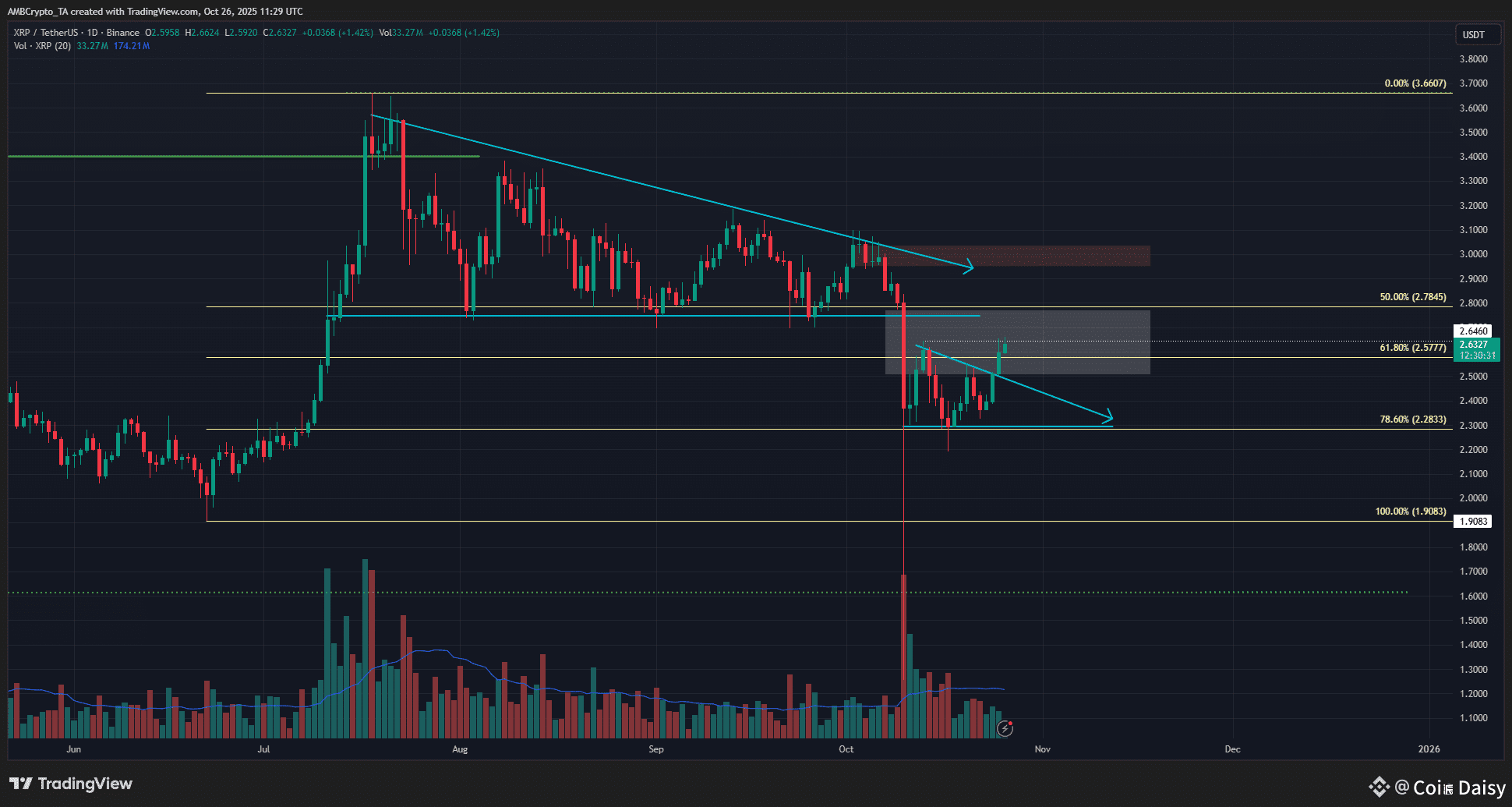 Though momentum is gaining, XRP bulls should be careful. The structure higher up is still not entirely bullish, and the $2.8–$3 supply zone will probably decide if the next significant impulse propels prices higher or results in consolidation.