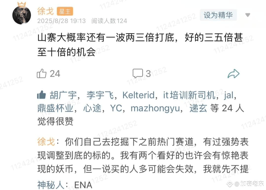真正的狂烈牛市能冲掉韭C最倔强的裤衩,现在大部分都仍旧人间清醒表现出罕见的冷静,说明市场大概率还没到狂欢。