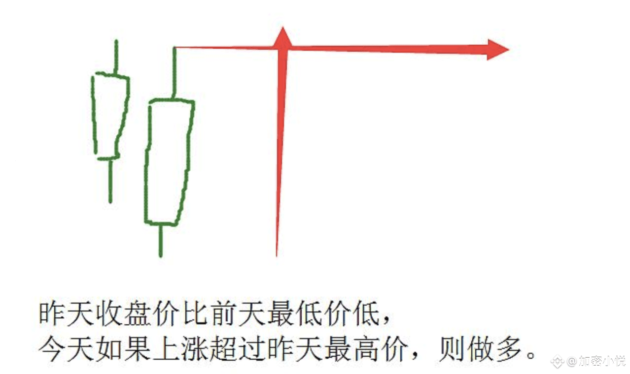 做空反之。如果昨天收盘价高于前天最高价,是一个非常看多的形态,如果今天跌破昨天最低价,则做空